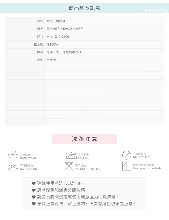 ● 褲底100%純棉,親膚細緻、吸濕排汗