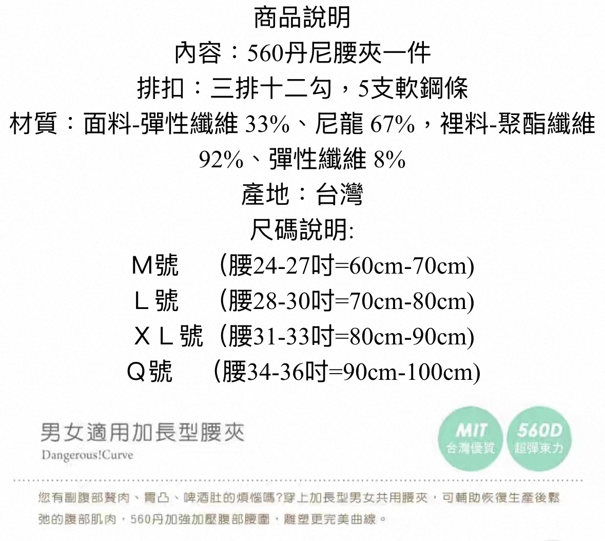 ● 超彈力560丹尼,緊致腹部避免胃凸